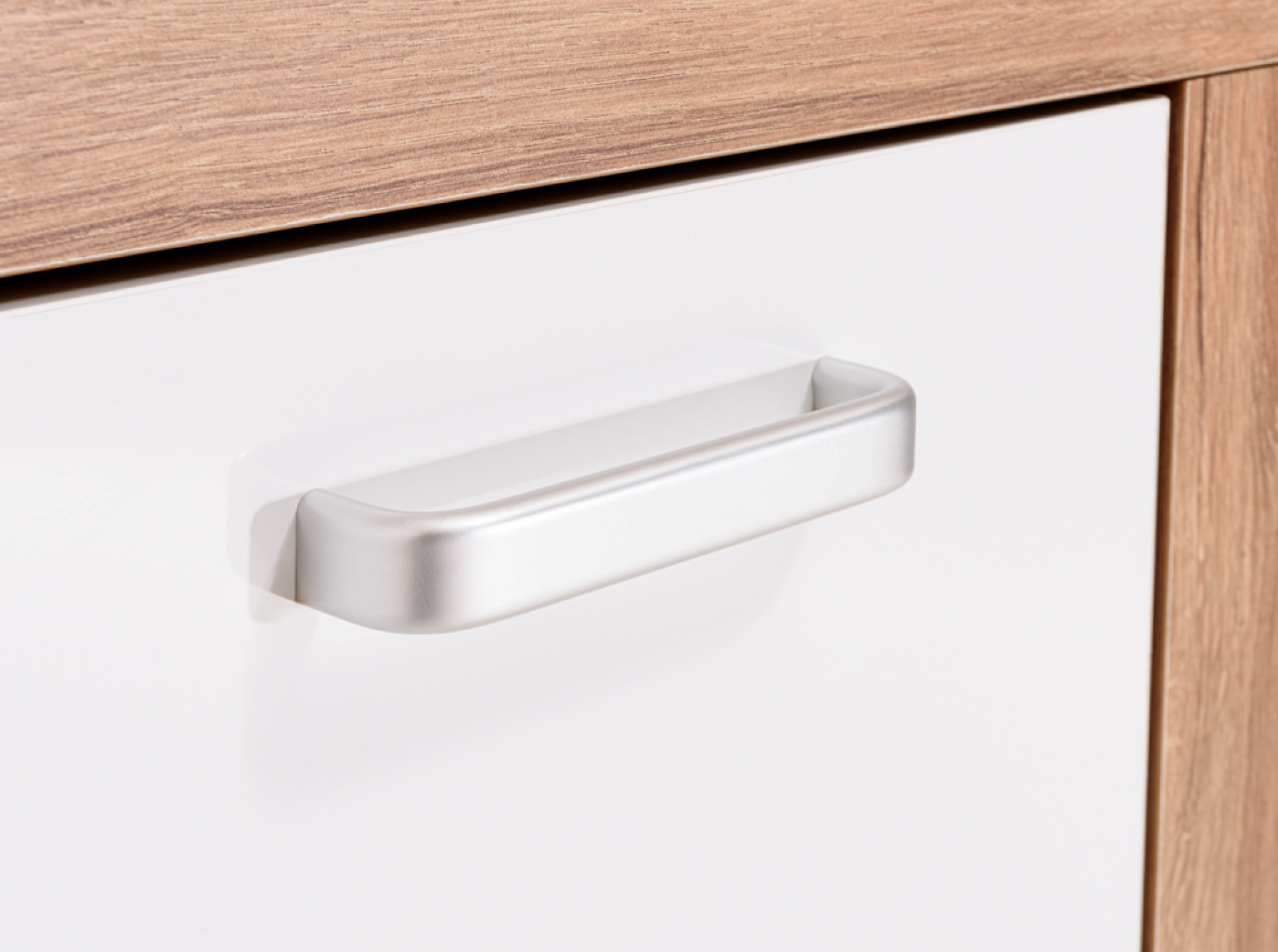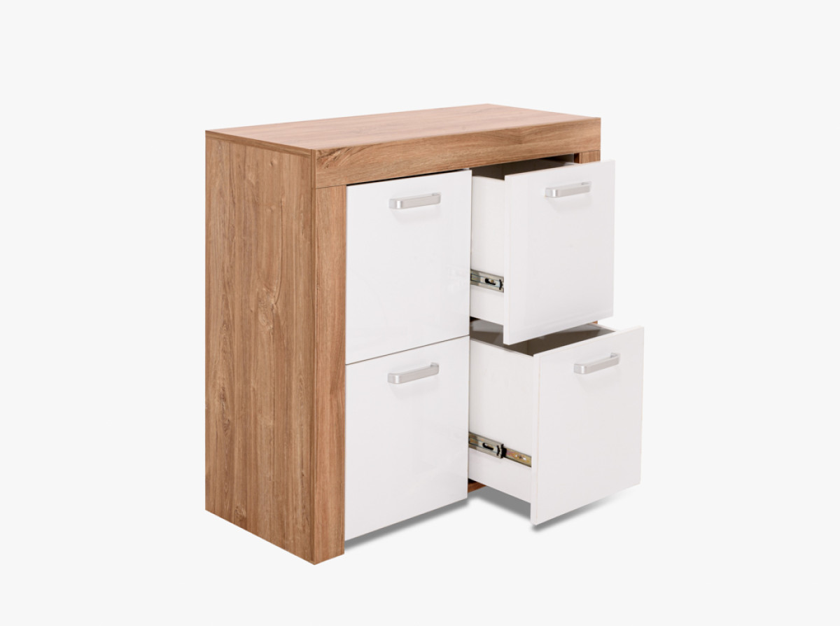 4-fiókos fényes fehér komód, választható színű külső színnel.