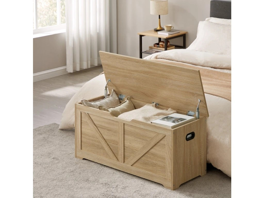 Tárolódoboz LEHAC fedéllel sonoma tölgy dekorban praktikus és stílusos kiegészítő az otthonába. Bőséges tárolóhelyet kínál takarók, párnák, játékok vagy szezonális szükségletek számára. Az elegáns design a természetes sonoma tölgy dekorációval könnyen illeszkedik a modern és hagyományos belső terekbe is.